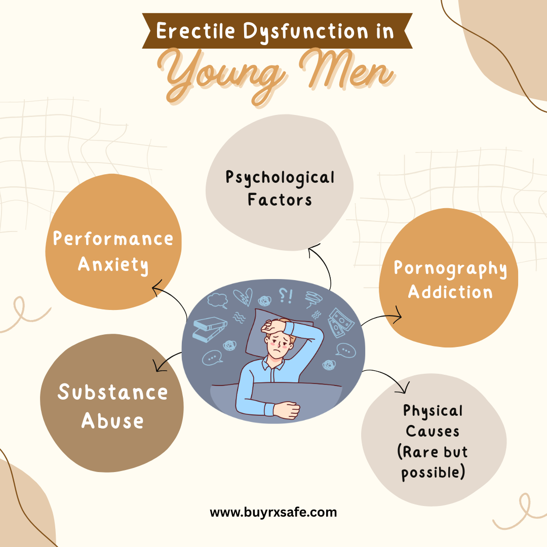 Physical Causes (Rare but possible): Diabetes, low testosterone, and injuries are all factors that can contribute to the problem. However, this occurs less frequently in younger males.